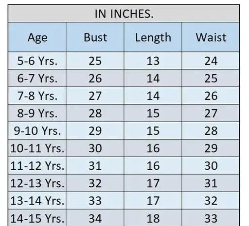 10-11 Years, 11-12 Years (Bust Size : 32 in, Length Size: 16 in)